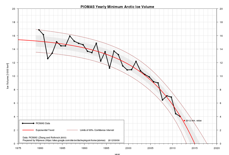 På TEDxHornstull konstaterade Per Ribbing från SVEF att om nuvarande trend fortsätter kommer Arktis att vara i princip helt isfritt sommartid redan runt år 2016. Han visade även en graf över detta, som dock inte verkar finnas online.