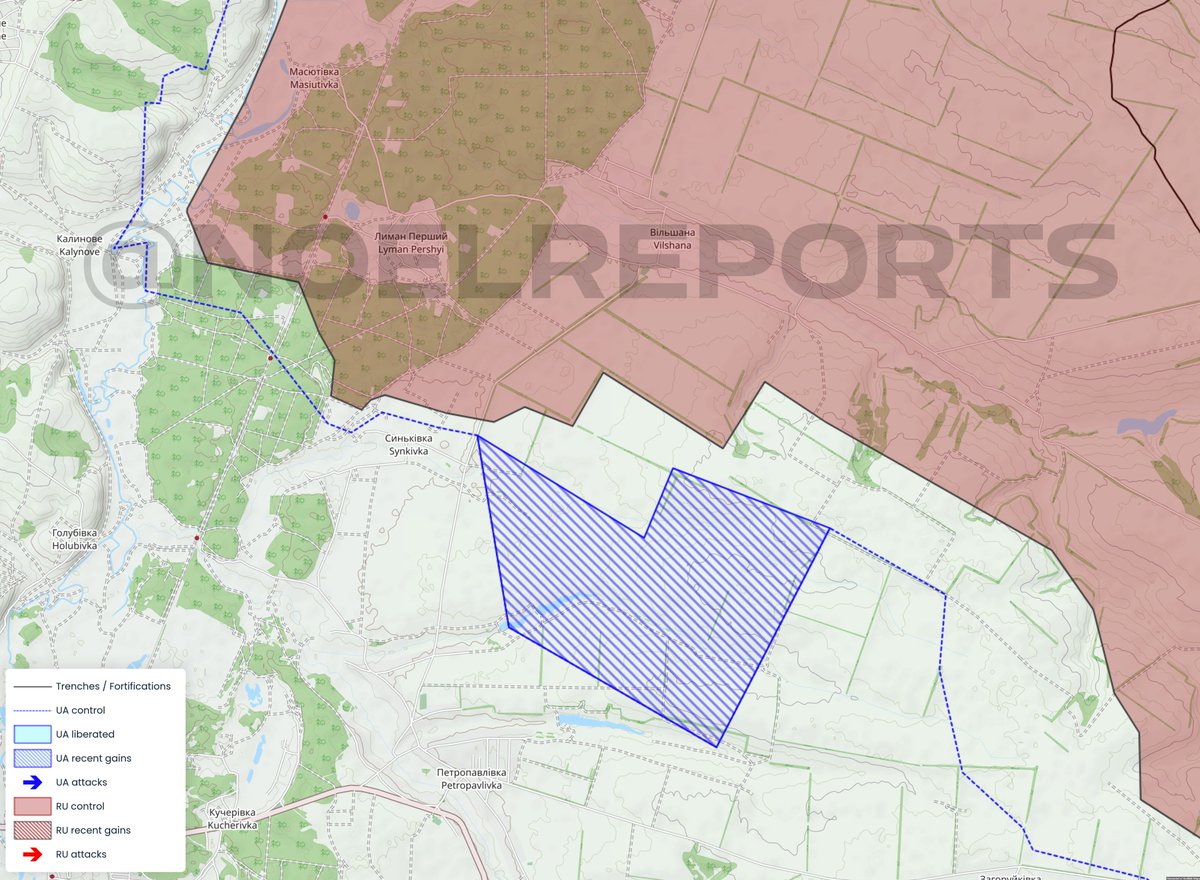 DeepstateMap rapporterar att Ukraina genomfört en lyckad motoffensiv vid Terny på Kreminnafronten. Nästan fyra kvadratkilometer befriades. Ryssland har försökt anfalla mot Terny, Jampolivka och Torkse för att nå fram till reservoaren och knipa av ett frontområde vid Kreminnas skogar, som därmed skulle bli svårare att försörja och försvara, men uppenbarligen hade Ukraina andra planer.