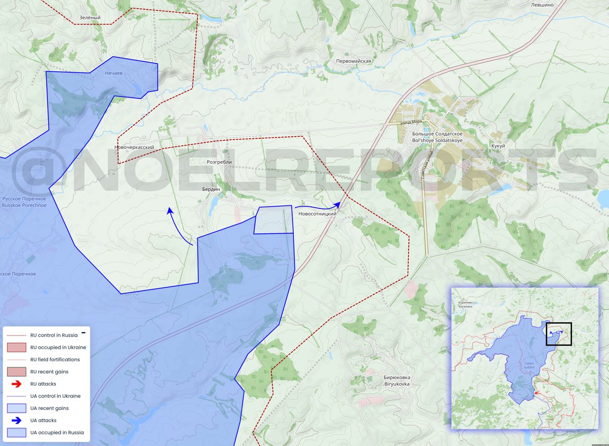 12:36 Noelreports har en liten karta som visar gårdagens ukrainska offensiv i Kursk Oblast. Eller i alla fall en av de tre anfallsriktningarna som det ryktas om.
