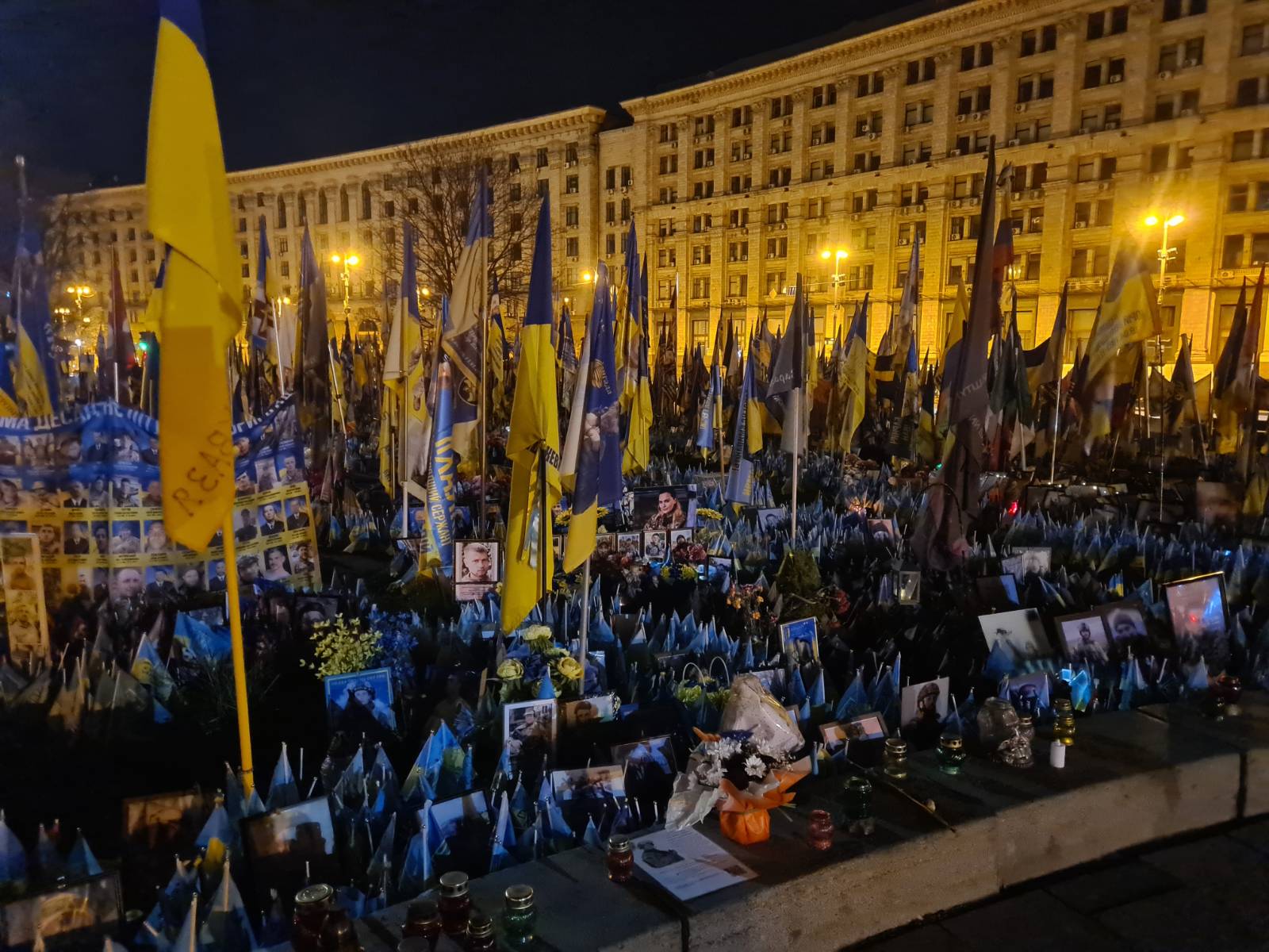 19:34 Lena har publicerat en gästkrönika från Självständighetstorget i Kyjiv, livlöst sent på kvällen, men ändå levande med minnet av de fallna hjältarna här.