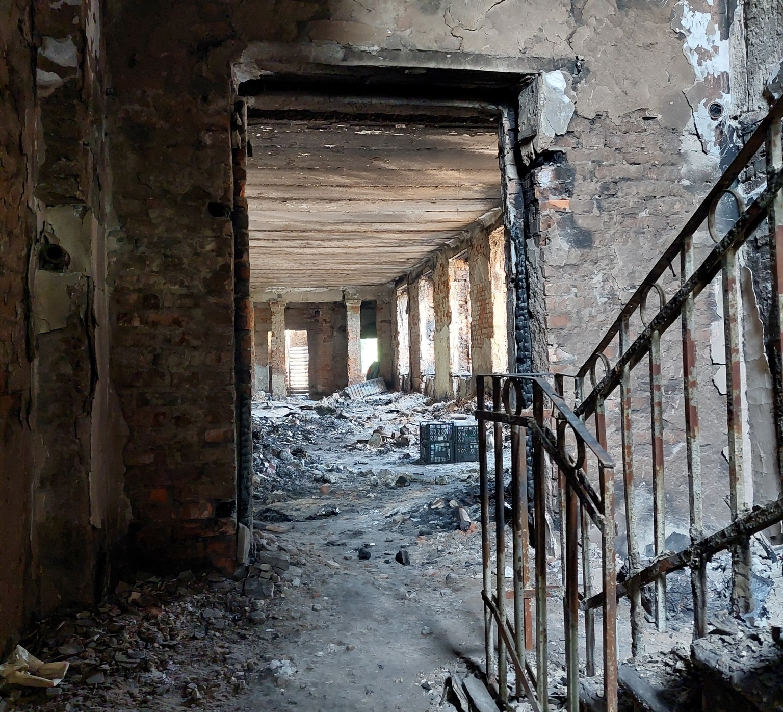 “Förra veckan var jag åter på väg mot Dnipro och stannade till för att se de utbrända resterna. Personal höll på att bära ut de få saker som fortfarande gick att rädda ur källaren som ej brunnit.