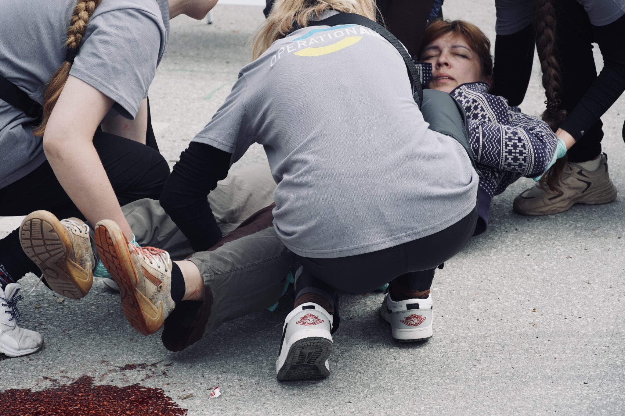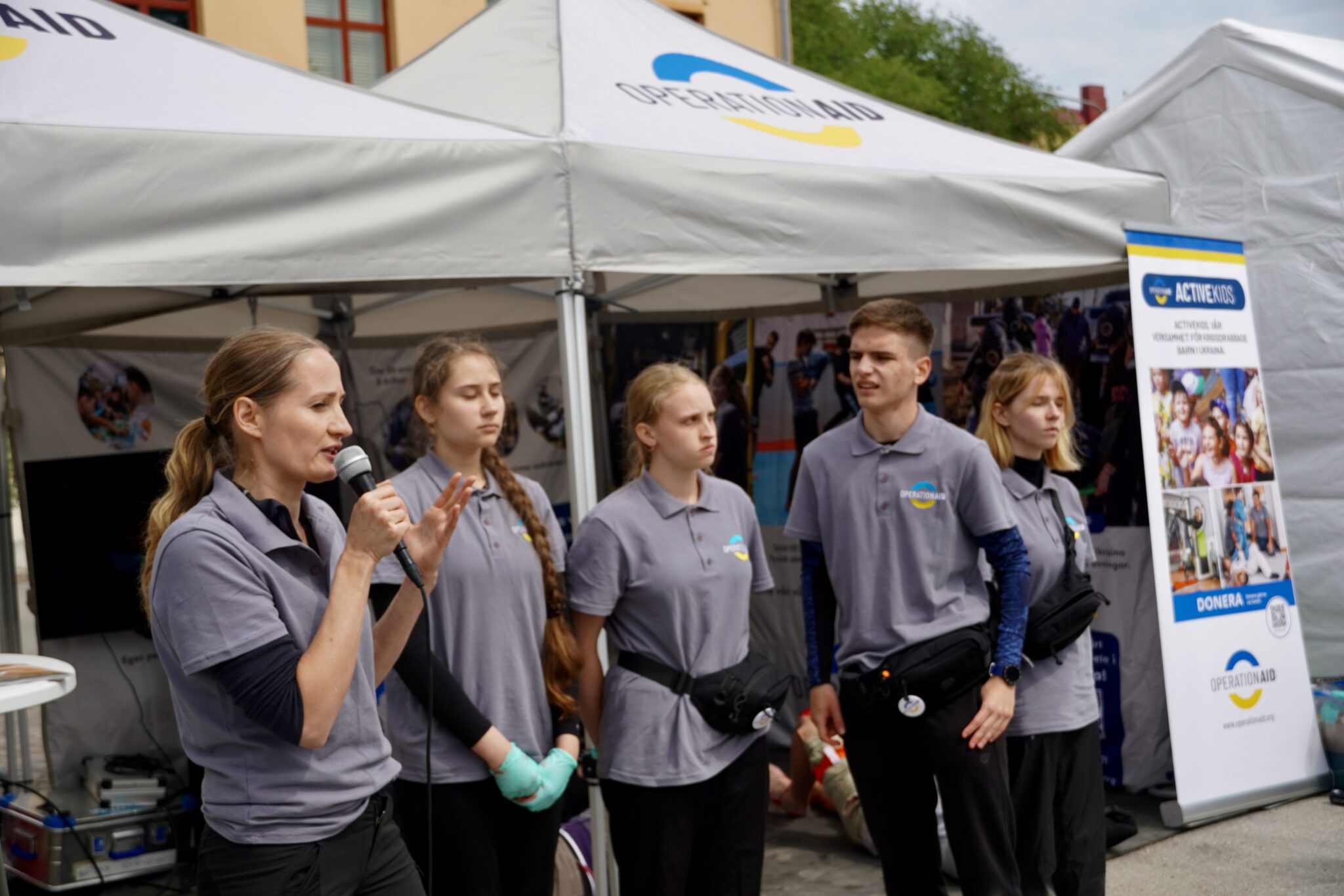 14:37 Operation Aid kör förevisningar om akutinsats direkt efter terrorbombning i Ukraina, där man utbildar ungdomar i sitt program Active Kids, för att kunna hjälpa skadade kamrater eller andra direkt efter Rysslands terrorbombningar. Detta är en del i det projekt som svenska UD är med och finansierar för att stödja ukrainska ungdomar på olika vis.
