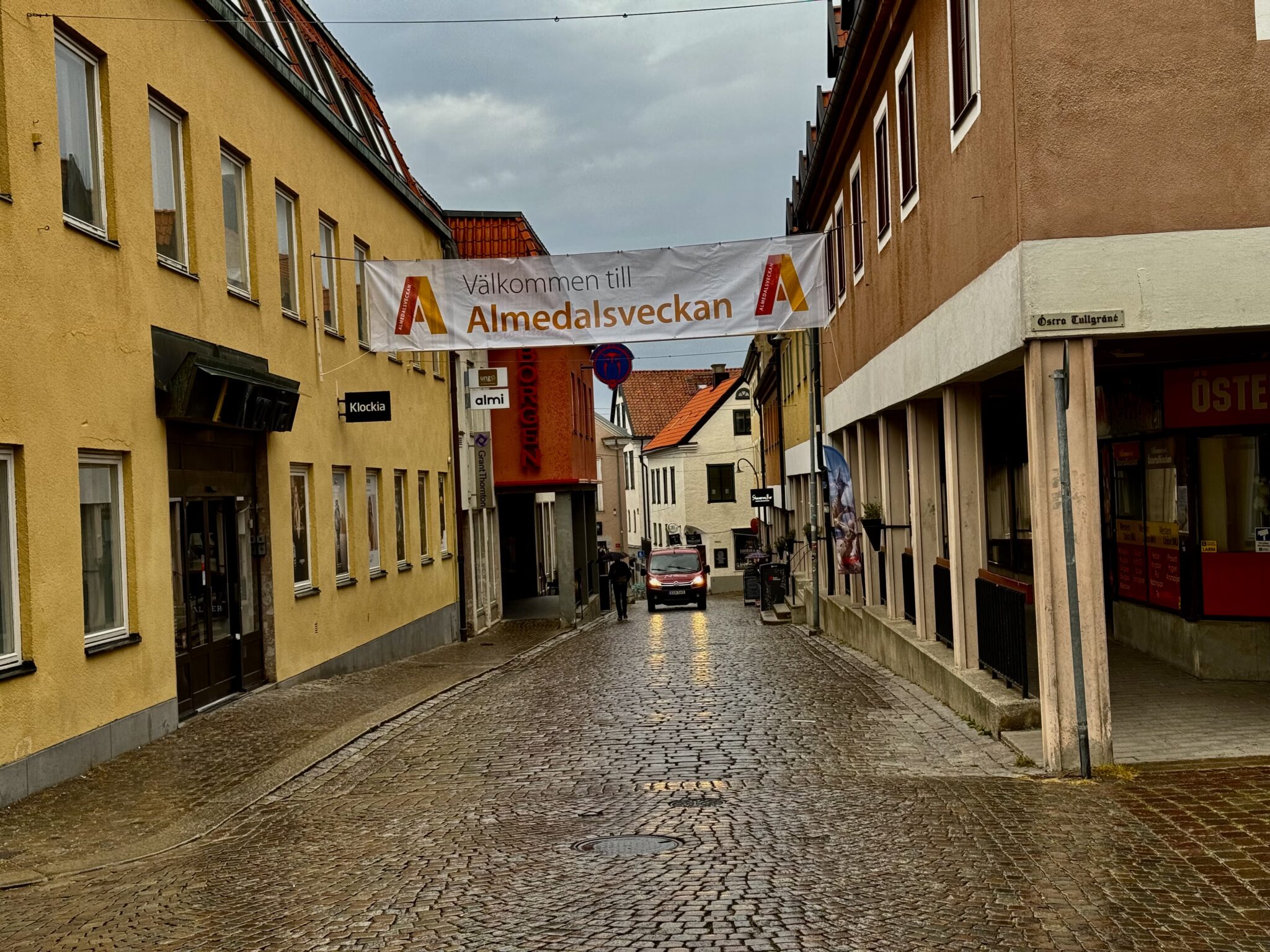 11:14 Almedalsveckan är igång, och det var mestadels tomt utom i Ukrainska Hubben, där det redan var paneler och fullt med folk. I övrigt mer poliser i uniform, utan uniform, eller personskydd, än besökare.