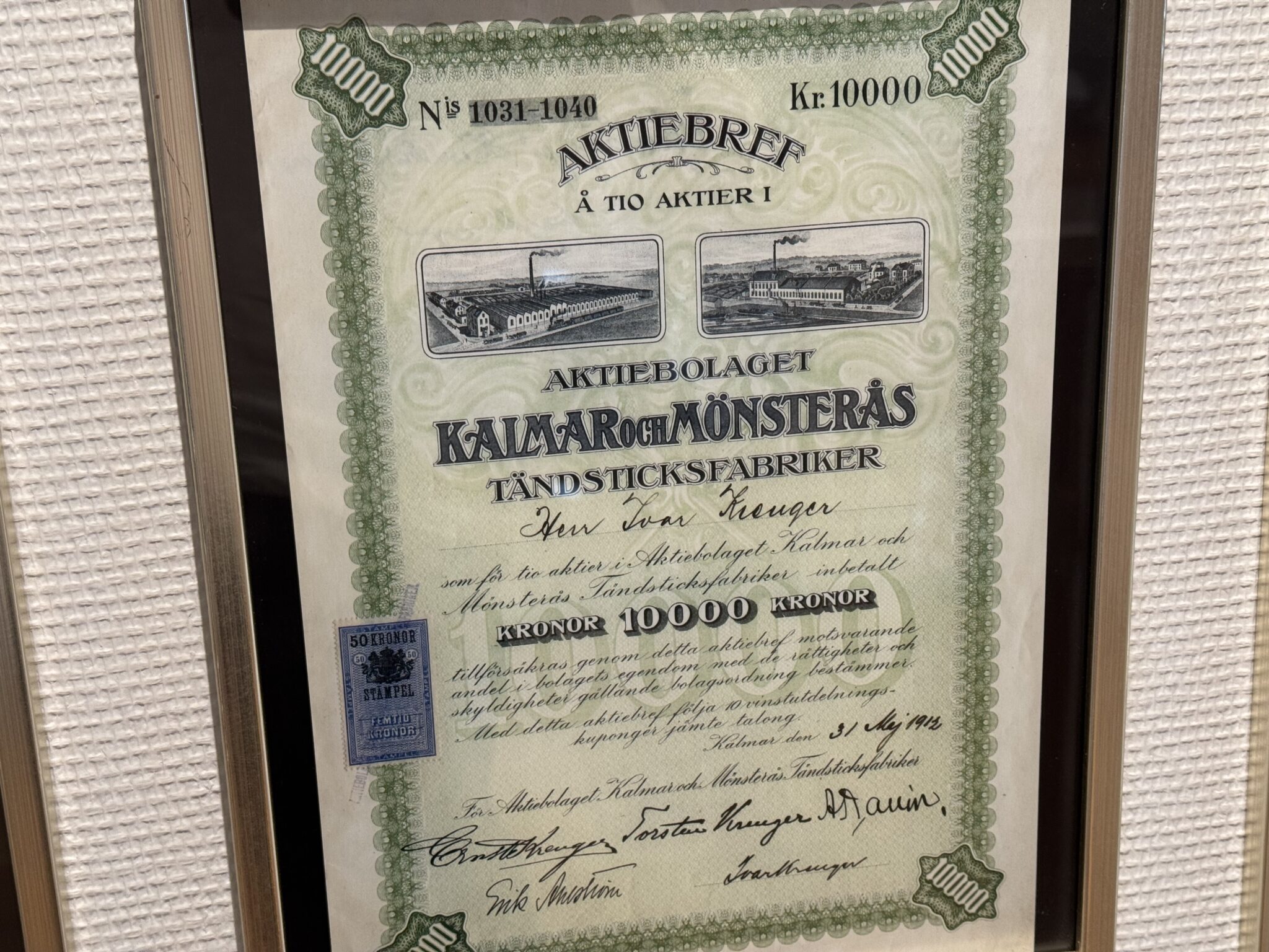 Aktiebrefet från år 1912 ger dock knappast någon avkastning att tala om ifall man säljer det idag. Kanske man kan få igen en tiondel av det nominella värdet?
