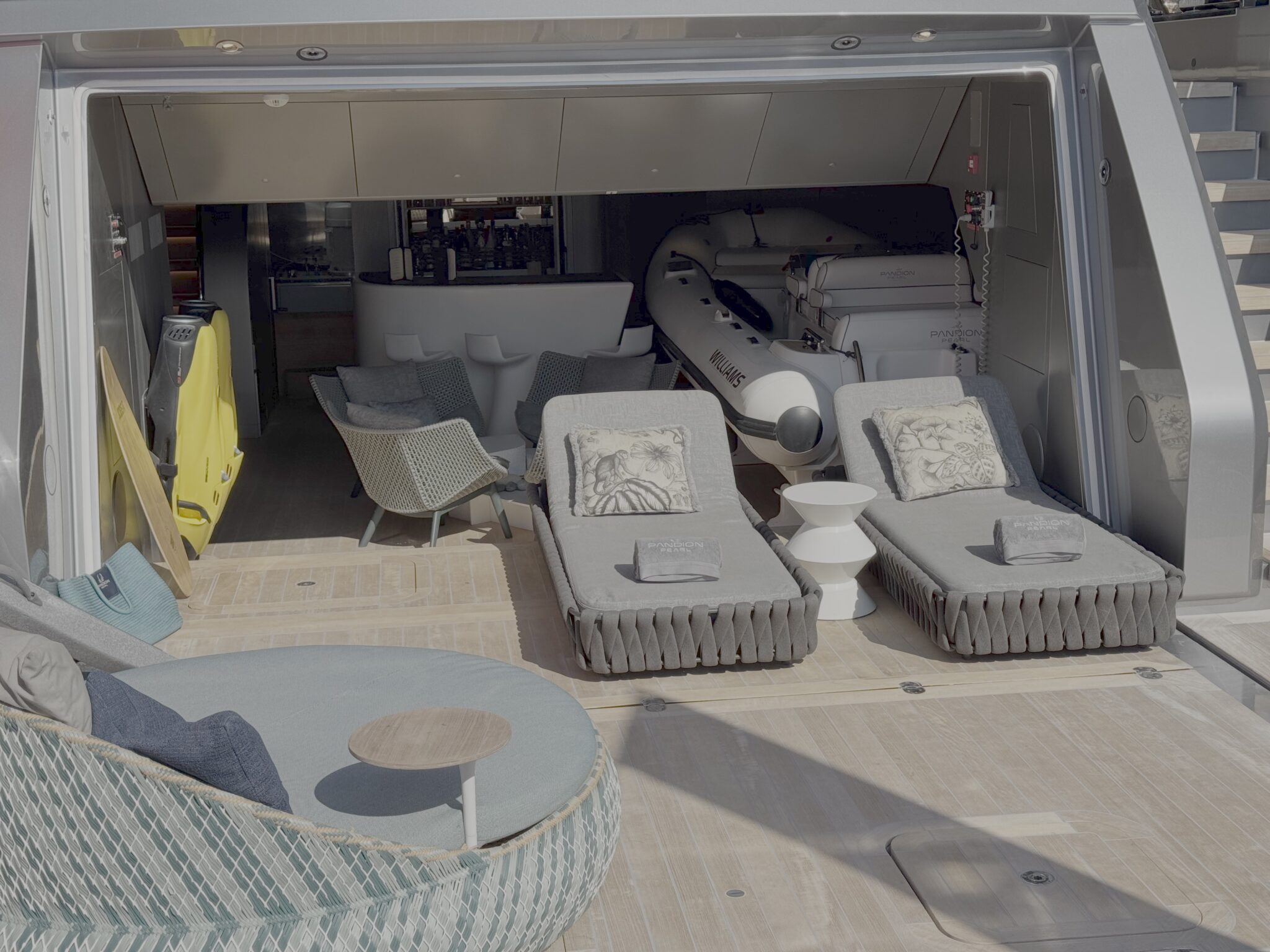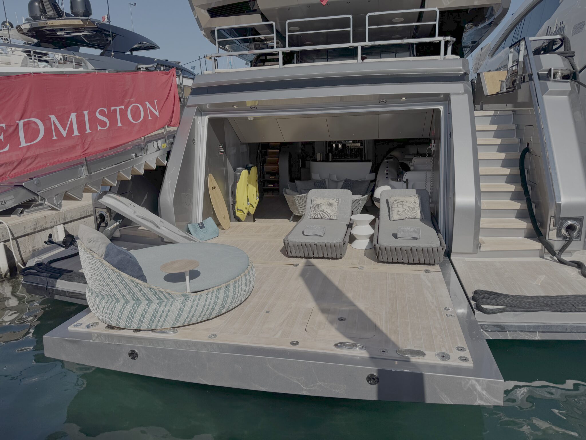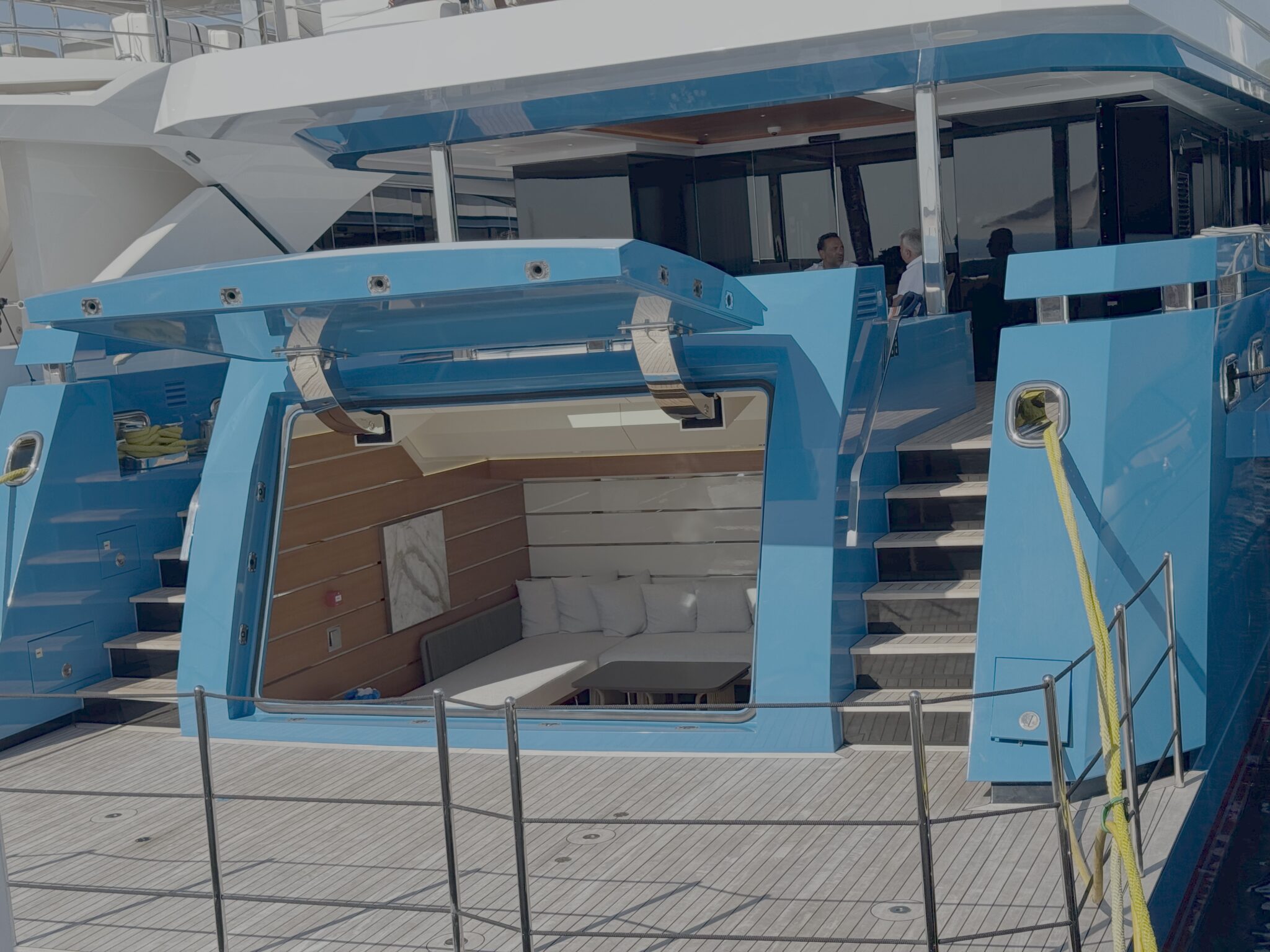 Trender finns förstås inom superyachts. Man ska numera ha beachclub istället för leksakshangar längst bak och många äldre har därför renoverats så man fått sin beachclub och leksakerna (ja, vattenskotrar etc kallas toys) får vara på fördäck eller i limotenderns hangar.