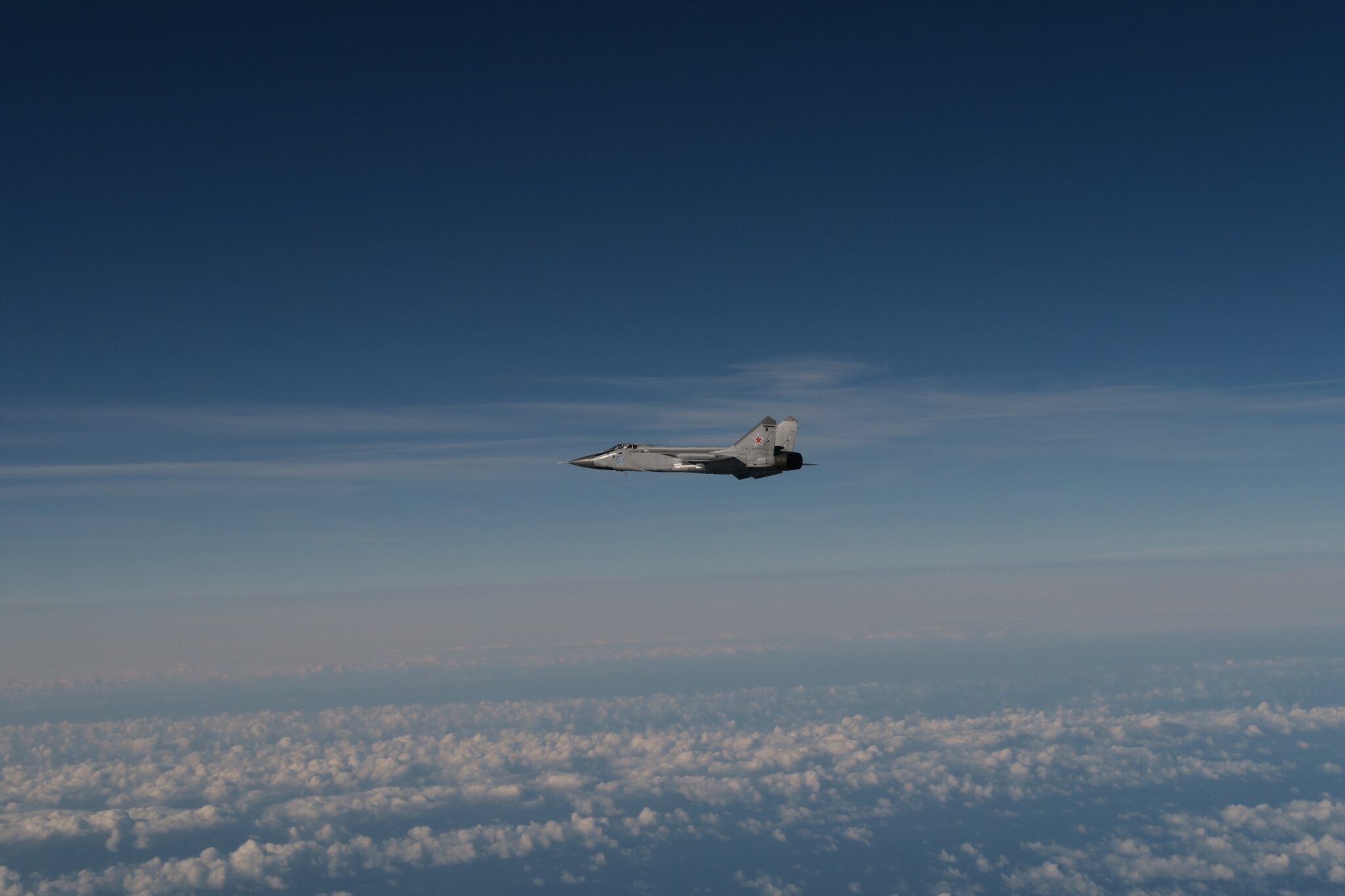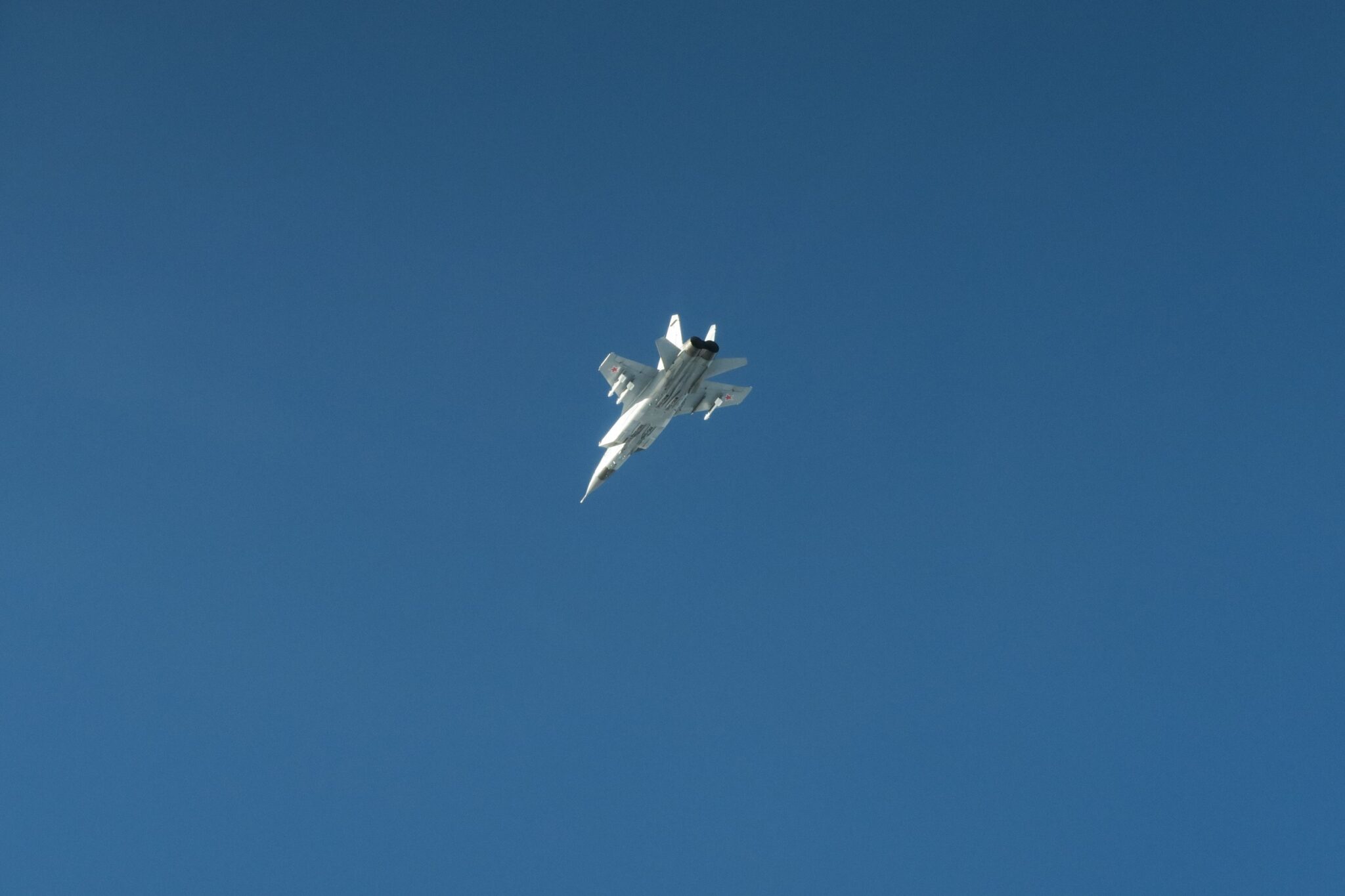 Foton finns från svenska Flygvapnet på en Mig-31 med påhängda robotar, och källan till dem hittas hos Försvarsmakten här som skriver att det är Mig-31 “fotograferad över Östersjön av den svenska incidentberedskapen i samband med dagens insats“. Den svenska insatsen bestod i att eskortera planen vidare söderut till Königsbergexklaven på internationellt luftrum. Försvarsmakten skriver: