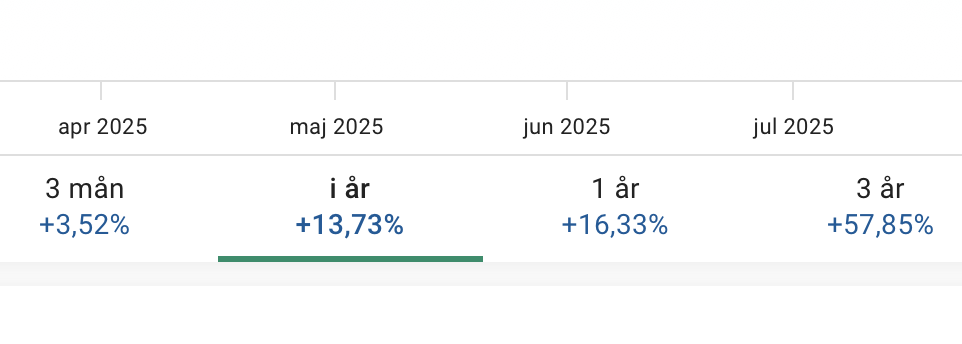 Bäst har förstås frontmarknadsfonden och demokratifonden gått, men sedan jag gick in Asien i våras flåsar asienfonden dem i nacken och har presterat bäst de senaste tre månaderna med +11.67% mot +5.40% för frontmarknadsfonden och +1.78% för demokratifonden. Avanza Zero har gått 8.31% samma period och Avanza Global (mest en USA-fond och mest amerikansk tech, global är som bekant lite missvisande) +6.88%. Visar kanske på värdet av global diversifiering via geografiska fonder som frontmarknader och Asien, samt Sverige och Norden.