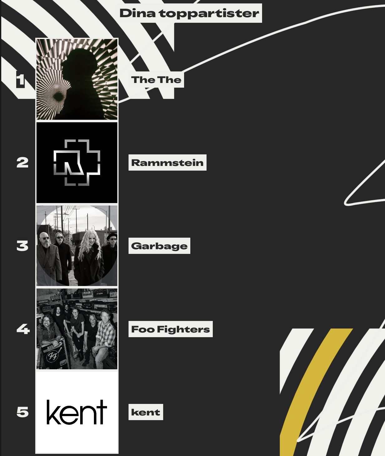 Märkligt då jag inte tänker på att jag väljer dessa grupper. Skulle gissa att mer Vånna Inget och annat skulle komma in på listan.