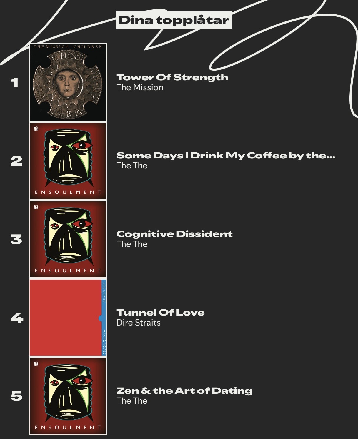 Uppenbarligen har jag strömmat skivan lite grann på Spotify, då jag kom in som #774 största lyssnare av The The globalt i år. Big fanboi moment.