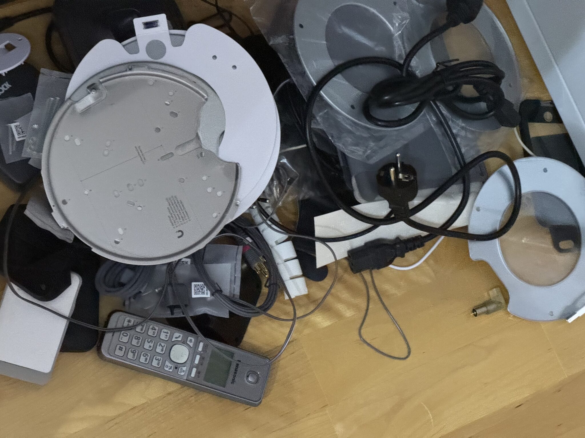 Det blir miljöåtervinning av detta nu. Kvar har jag i princip bara en skrivbordslåda med saker som faktiskt används. Ibland. Allt behov av extrakablar förvaras permanent i min ryggsäck, det krävs inte mer än så och att enhetligt gå mot enbart USB-C är en välsignelse även om en del prylar fortfarande kräver gammal USB. I princip har jag två uppsättningar sladdar – de som behövs hemma, och en uppsättning motsvarande i ryggsäcken.