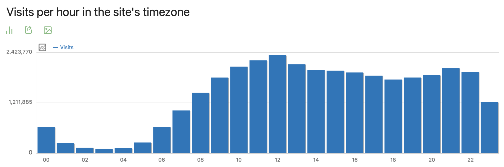 Som man ser ökar trafiken under morgonen och toppar vid lunch, för att droppa av för en botten när man åker hem från jobbet. En ny topp kommer efter man ätit middag och efter 23 droppar trafiken snabbt av, även om en del fortfarande håller ut efter midnatt, för att börja återhämta sig från 05 på morgonen.