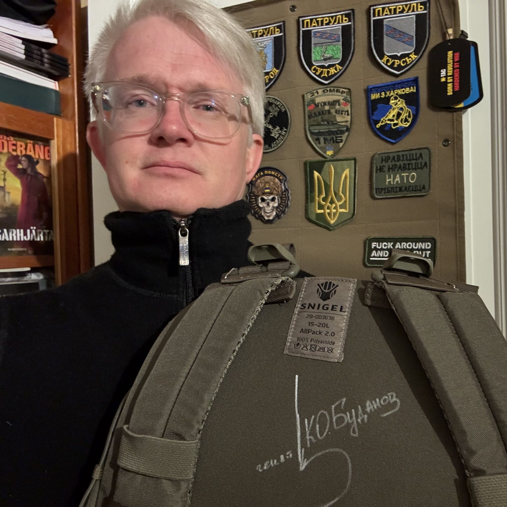 17:21 Det finns nu en auktion av en unik ryggsäck från Snigel, personligen signerad av Hurs legendariske fram till nyligen chef Kyrylo Budanov, numera Zelenskyjs stabschef (fixad länk). Insamlade medel går till stöd för Ukraina och bloggen kan gå i god för auktionsägaren på Tradera. Det finns tre sådana här ryggsäckar. En av dem är i bloggarens ägo, se foto nedan. Auktionen är den sista ryggsäcken. Unika samlarföremål och pengarna går som sagt till stöd för Ukraina.