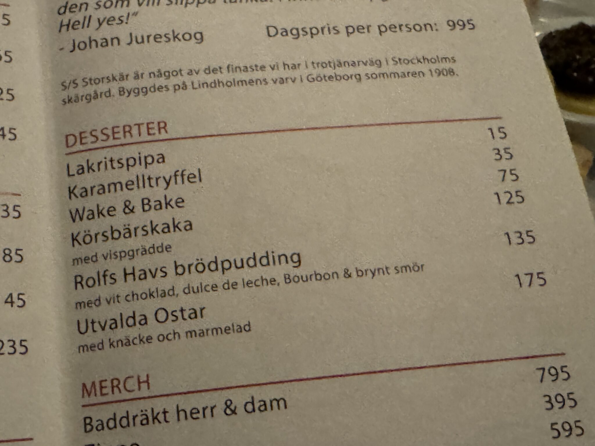 Bästa efterrätten nånsin var på Rolfs hav – vodka och kaviar. Servitörens enda kommentar var ‘de som vet, vet’.