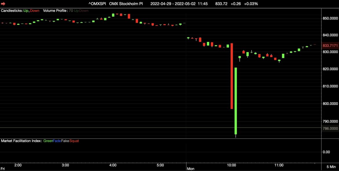 De europeiska börserna blev utsatta för en sk flashcrash under några minuter på förmiddagen, med ett panikartat ras med all sannolikhet drivet av att någon börsrobot fått spel. Kurserna återhämtade …