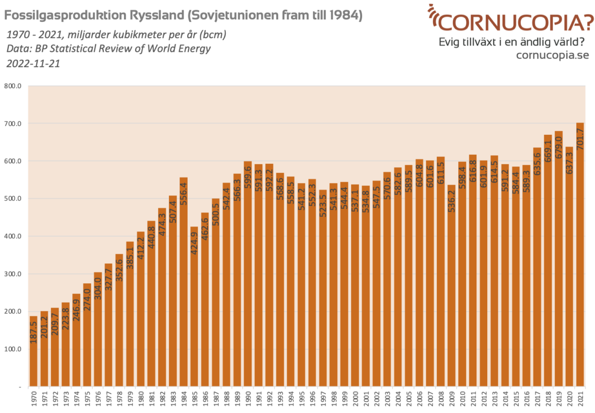 Ryssland har inte nått nationell peak gas och nedgången 2020 berodde enbart på coronapandemin. Strypningen av såld gas till Europa och kriget i Ukraina sker alltså inte på grund av …