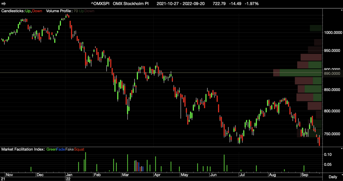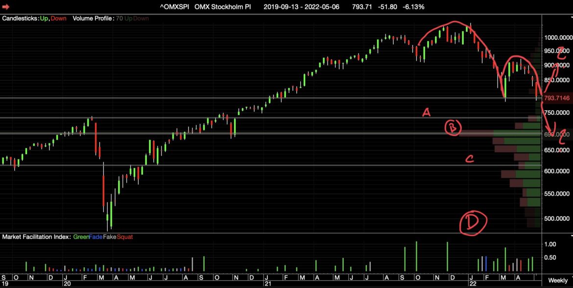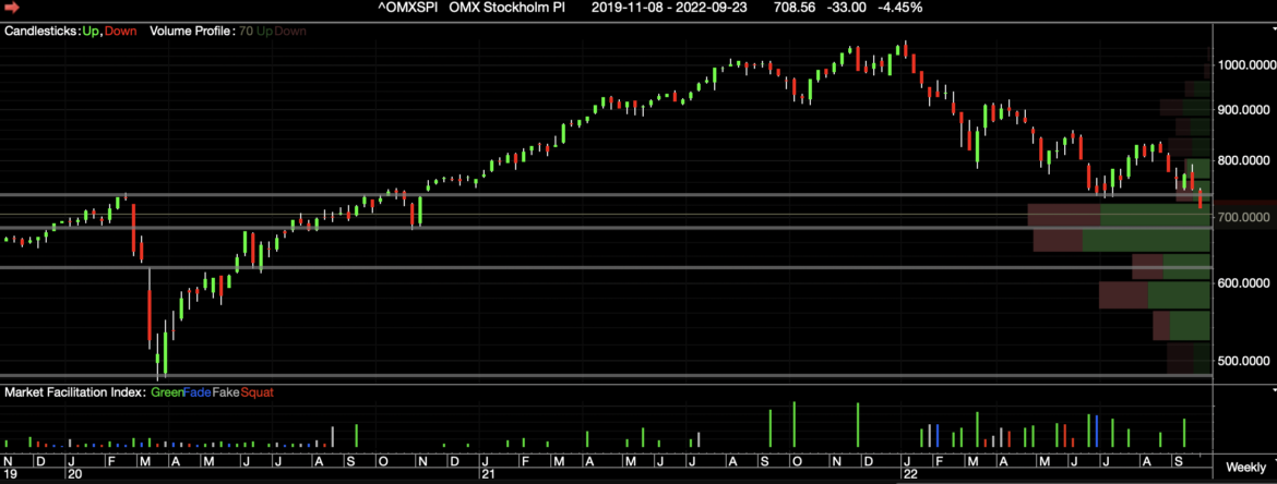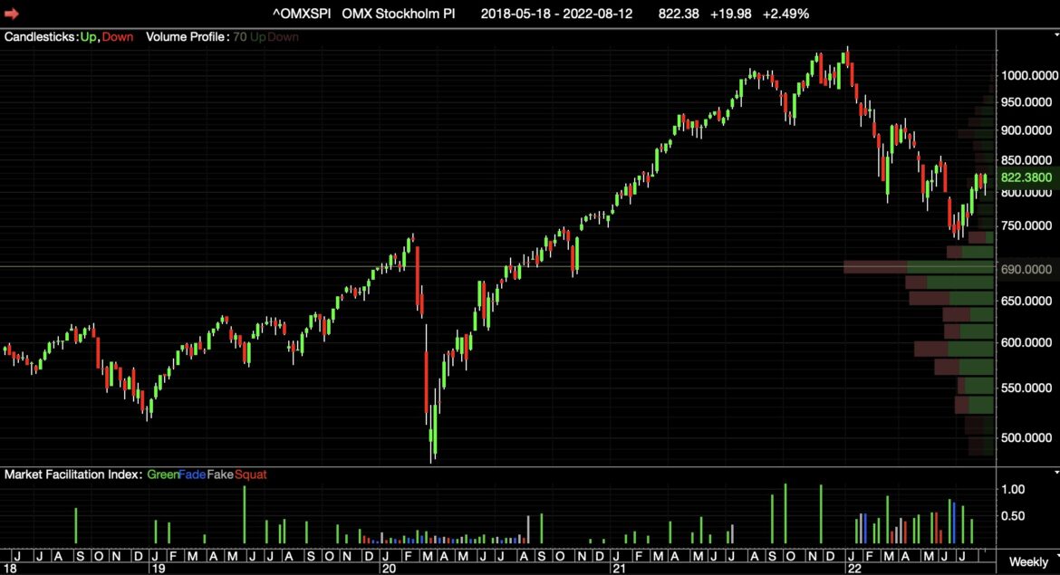 Stockholmsbörsens OMXSPI-index är ner med -23.47 sedan årsskiftet, medan guldpriset gått åt andra hållet mätt i svenska kronor. Tekniskt är börsen nu vid en intressant nivå, nämligen där den vände …